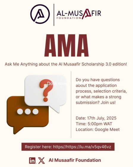 The post Call for Application: Al Musaafir Scholarship 3.0 Program 2025 appeared first on Advert By Dotifi .Com Domains for almajiri.com.ng | Best African Hausa Music Blog, Entertainment ,News and Gossips .