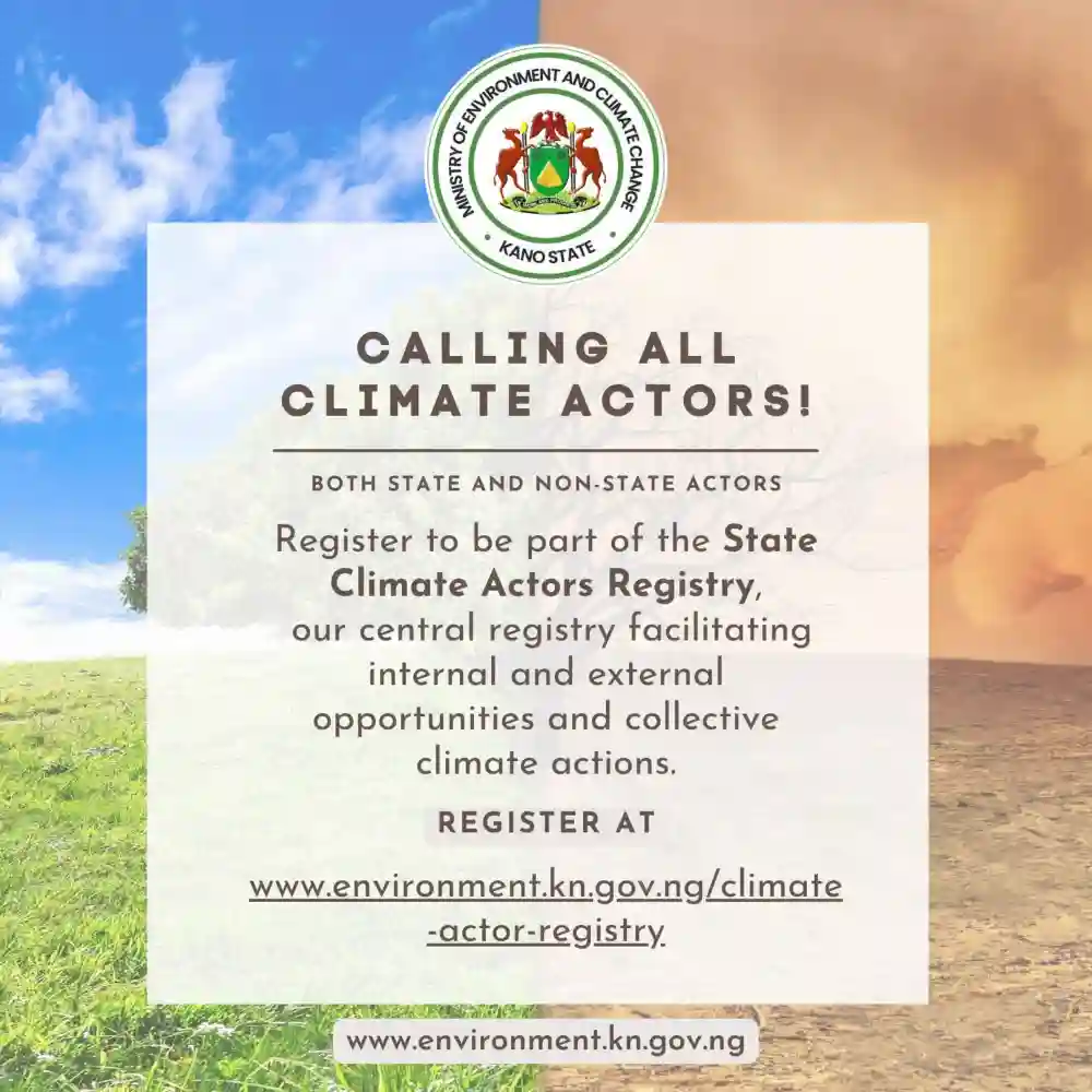 The Kano State Government, through the Kano State Ministry of Environment and Climate Change, has officially launched the Climate Actors Registry, inviting all climate-focused individuals and organizations across the state to register.